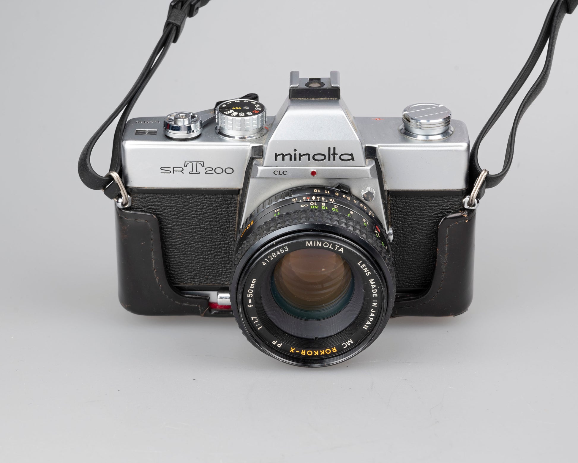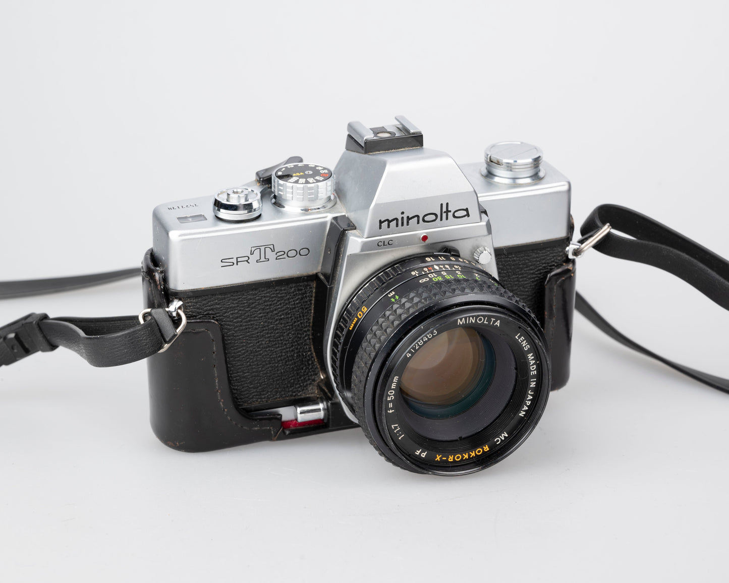 The Minolta SRT 200 is a classic mechanical 35mm film SLR with high quality all metal construction. The included lens is a fast and very sharp MC Rokkor-X PF 50mm f/1.7(50cm minimum focus distance; 6 Elements in 5 Groups). It features Minolta's CLC (contrast light compensator) light meter circuit for excellent exposure accuracy in normal shooting conditions.