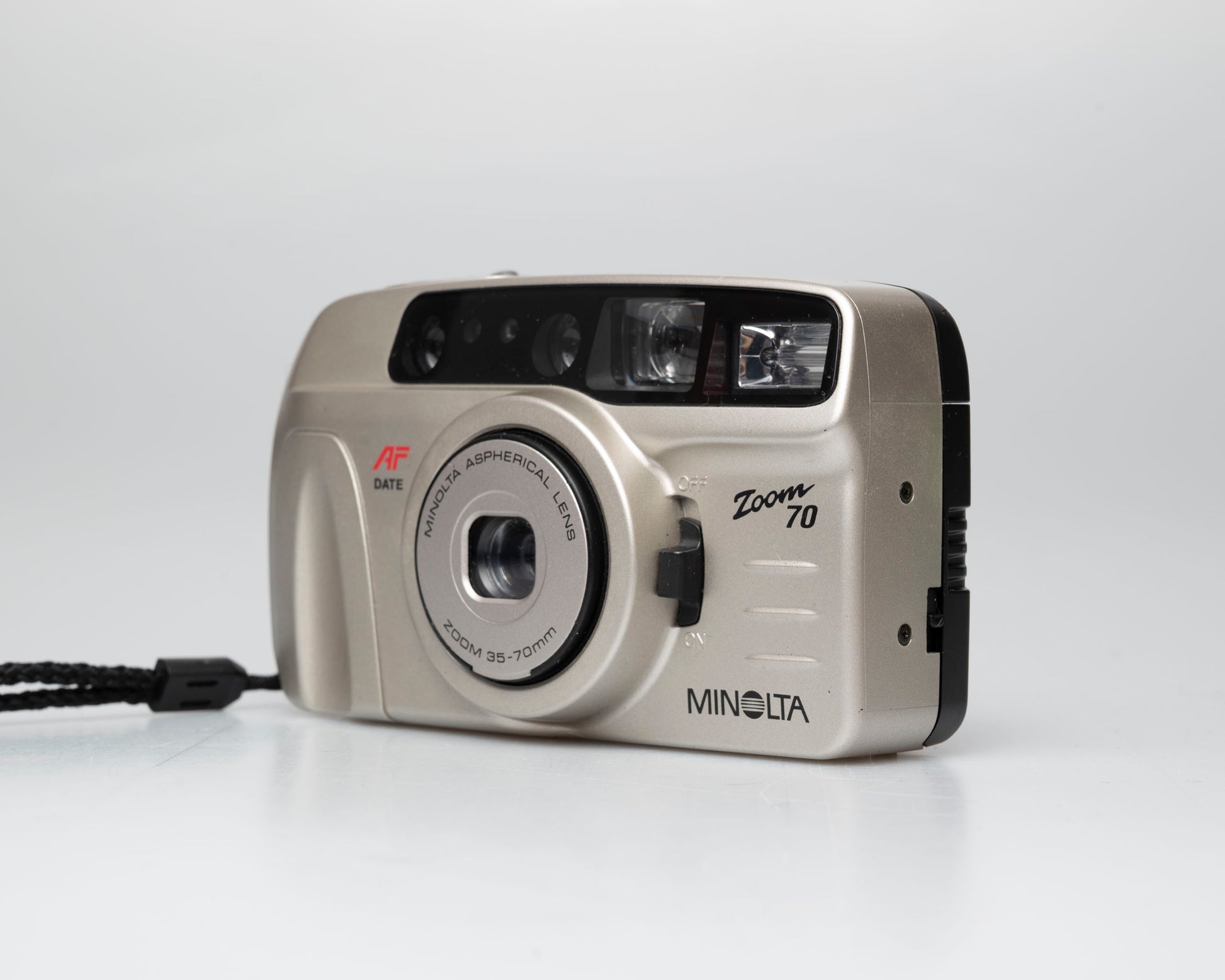 The Minolta Zoom 70 is a beginner-friendly point-and-shot 35mm camera from the 1990s with a better-than-typical zoom lens (thanks in part to its inclusion of an aspherical lens element).