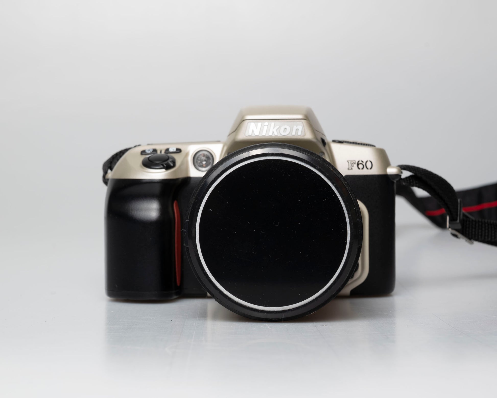 The Nikon F60 is a very capable autofocus 35mm film SLR from the late 1990s. It was the company's update to the successful F50, with many subtle improvements (notably replacing the button interface with a much more intuitive mode dial plus thumb wheel).