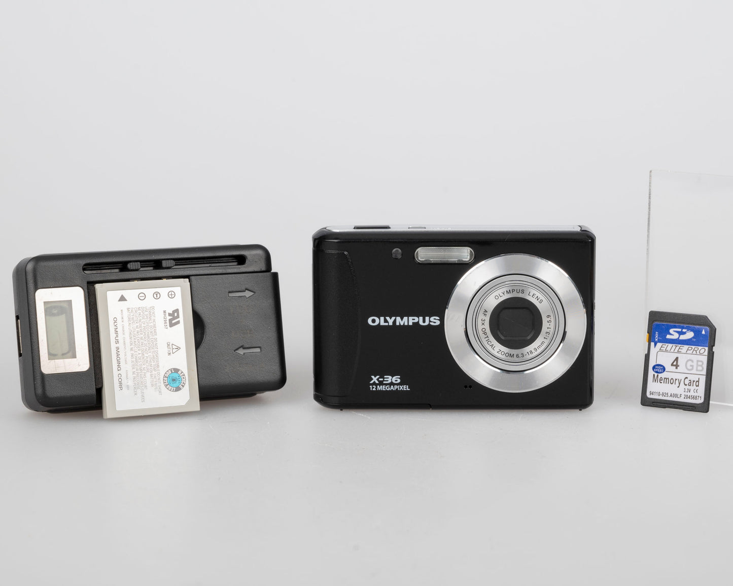 Olympus X-36 12MP CCD sensor digicam w/ charger + battery + 4GB SD card