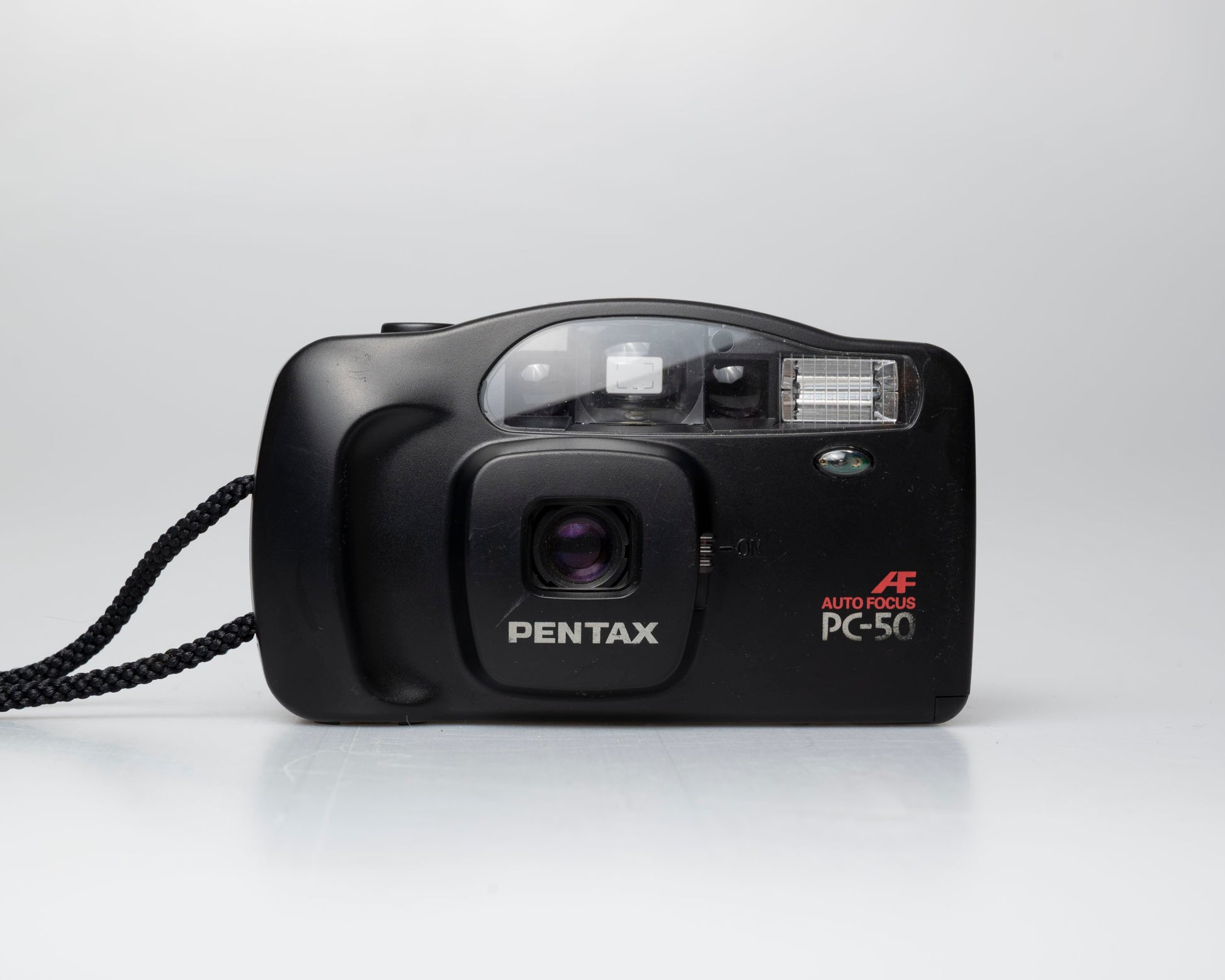 The Pentax PC-50 is a simple, well-designed 35mm point-and-shoot from the mid 1990s. It features a 35mm f4.5 lens, auto focus, a self-timer, and built-in flash.
