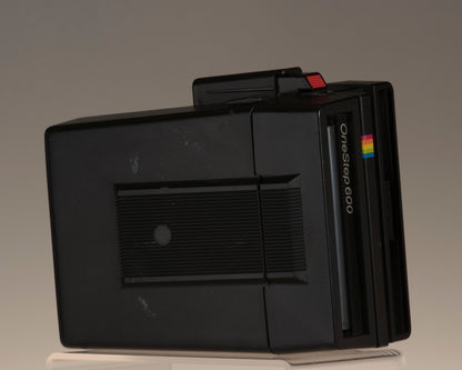 The Polaroid OneStep 600 was the first camera designed to use type 600 film (this film is still available today from Polaroid Originals and sold at most cameras stores). It's a relatively simple camera with a very striking angular styling that differs from later models.