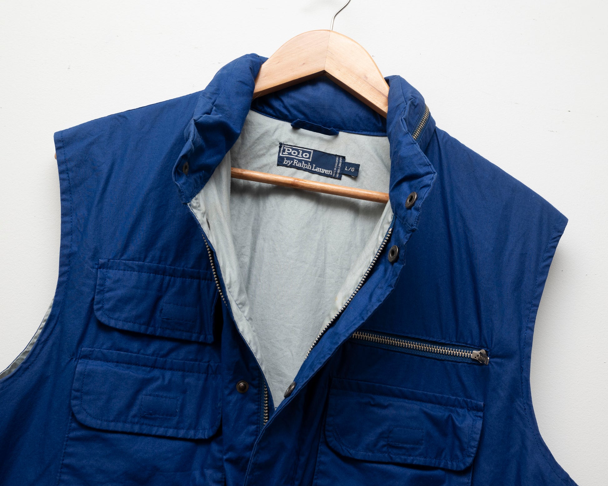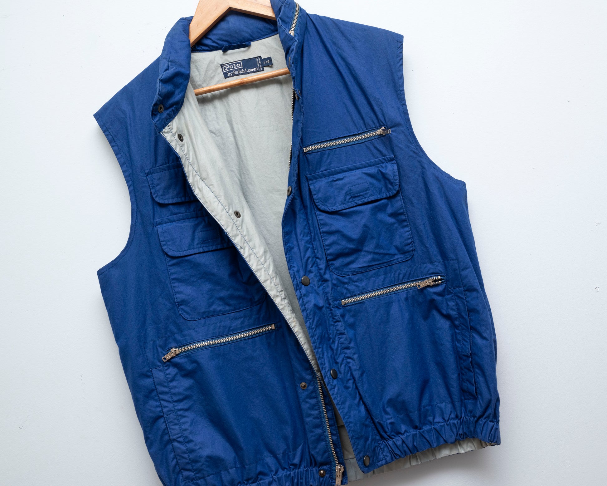 Sporty Ralph Lauren Polo utility vest - lots of pockets for extra rolls of film! Hood folds into zippered collar. Made in Singapore.