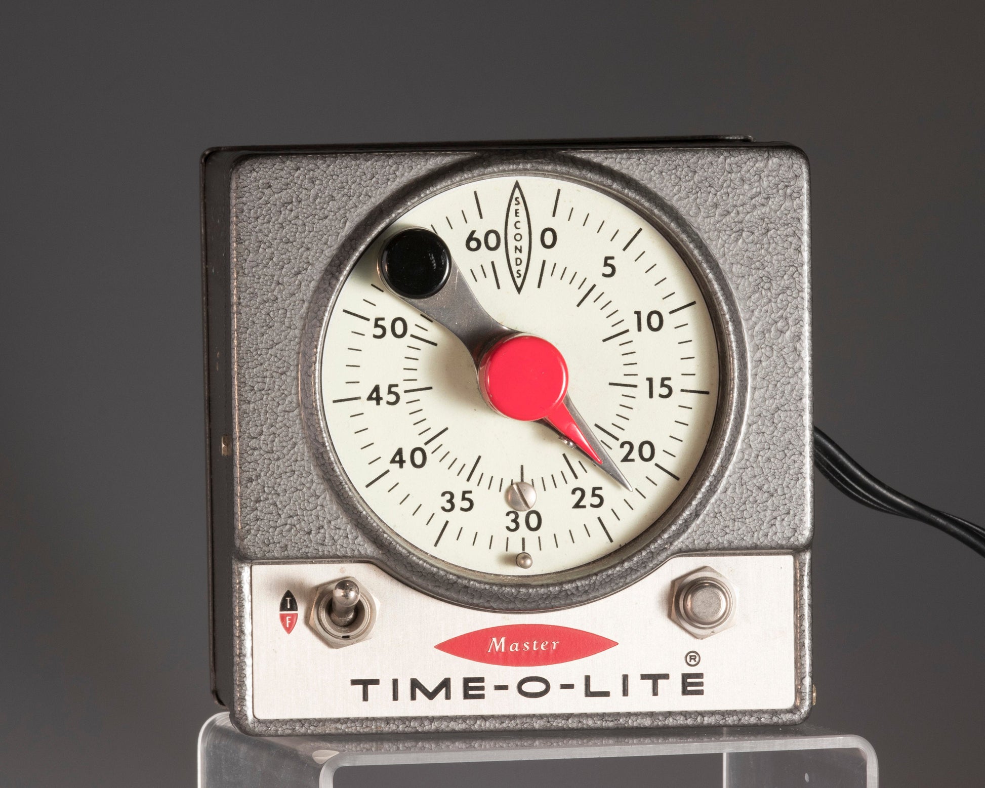 This is a very well-built compact darkroom timer that was tested and works perfectly. The Time-O-Lite was made in the USA by the Industrial Timer Corporation.